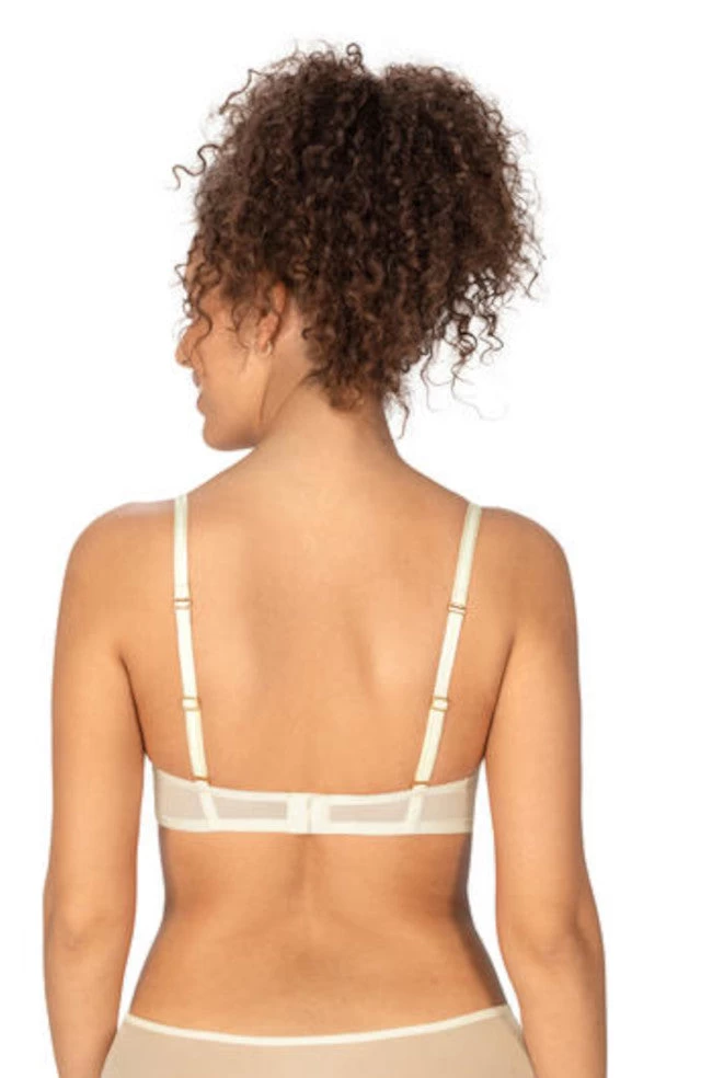 Daydream lightly padded Wirefree Bra in an off white/floral colour combination features delicate floral lace over an off white background with rose gold fittings. Hidden pockets will hold fillers or prosthesis firmly in place. Team with the