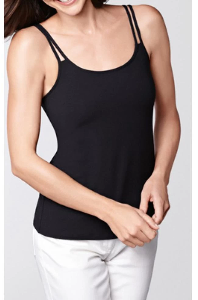Valletta Singlet by Amoena in black is manufactured in a lovely soft modal fabric and features adjustable twin straps and has removable shelf support. Available in sizes 10-20