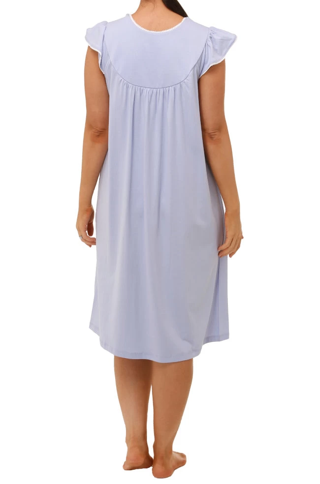 Amy Jersey Cotton Nightie by Schrank in a lovely lavender colour features cap sleeves and a round neckline with petite lace detail and a gathered front. Available in sizes 10-18.