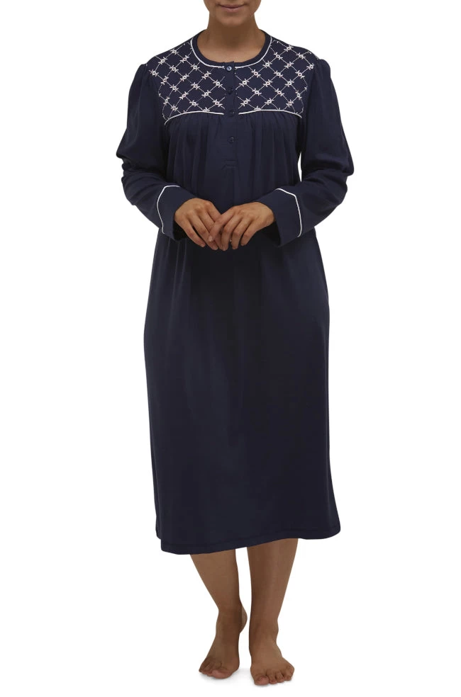 Angelique Nightie in navy by Schrank in a soft and warm easy care stretchy polyester cotton fabric that feels so nice against your skin. Available in sizes 10-26.