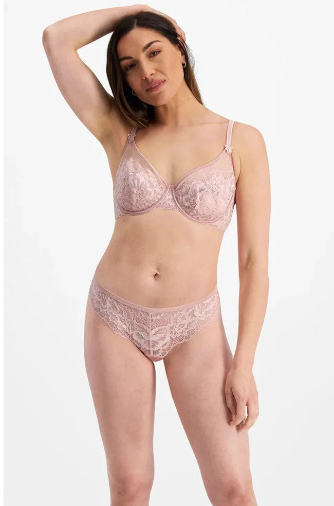 Madeline Full Cup UW Bra in a dusty pink colour features fully adjustable straps with embroidered motif. Great support for larger cup sizes. Team with the matching Madeline