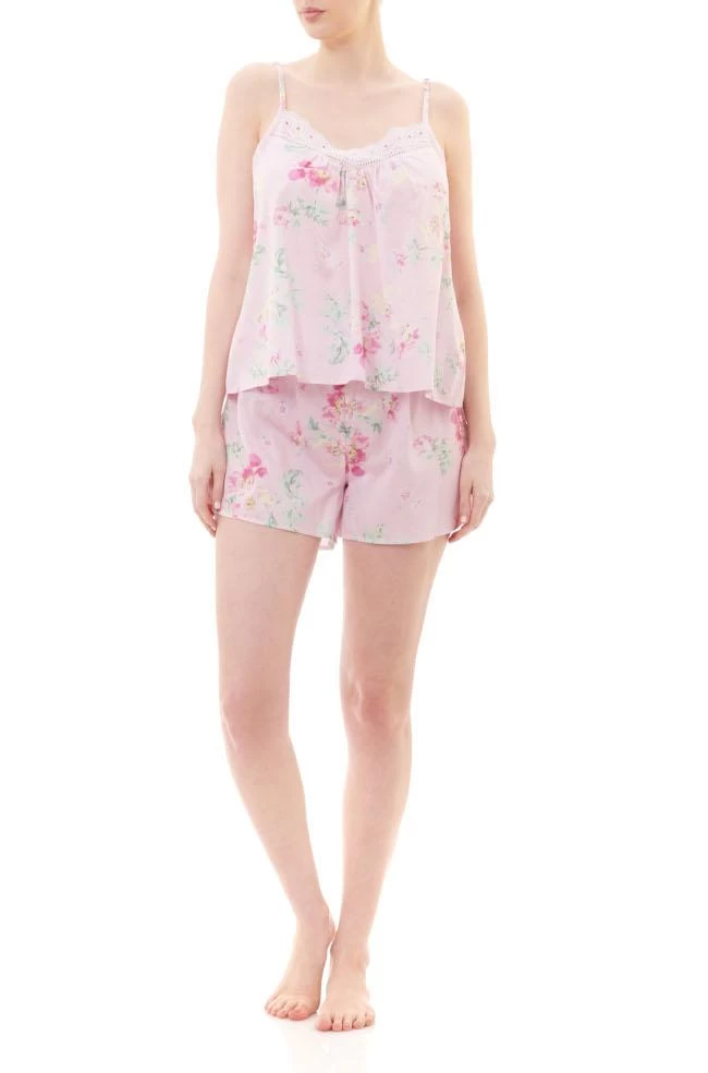 Bridie Shortie Cotton Cami Set (Pink Floral)