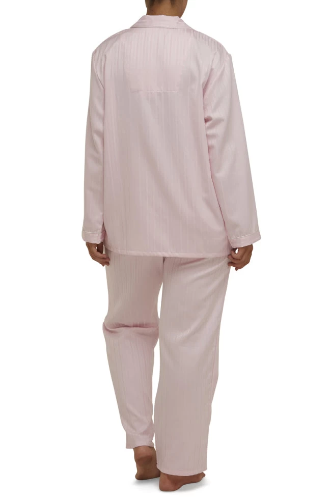 Casandra PJ Set in pink by Schrank is a classic cut PJ set. The top features contrasting piping, long sleeves, v-neckline and a full button front opening. The bottoms have an elasticated waist. manufactured in a soft crisp poly/cotton fabric. Available in sizes 10-24.