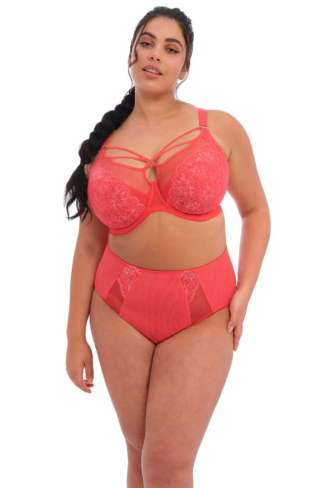 Brianna UW Plunge Bra by Elomi in stunning Cayenne colour features exquisite strappy detailing and wide comfortable straps. Perfect for larger cup sizes where you need great support all day. Team with the matching