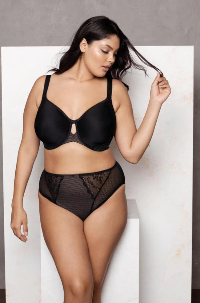 Charley Full Brief in a classic black by Elomi features floral lace side panels and a semi-sheer back. This versatile classic black can be teamed with the