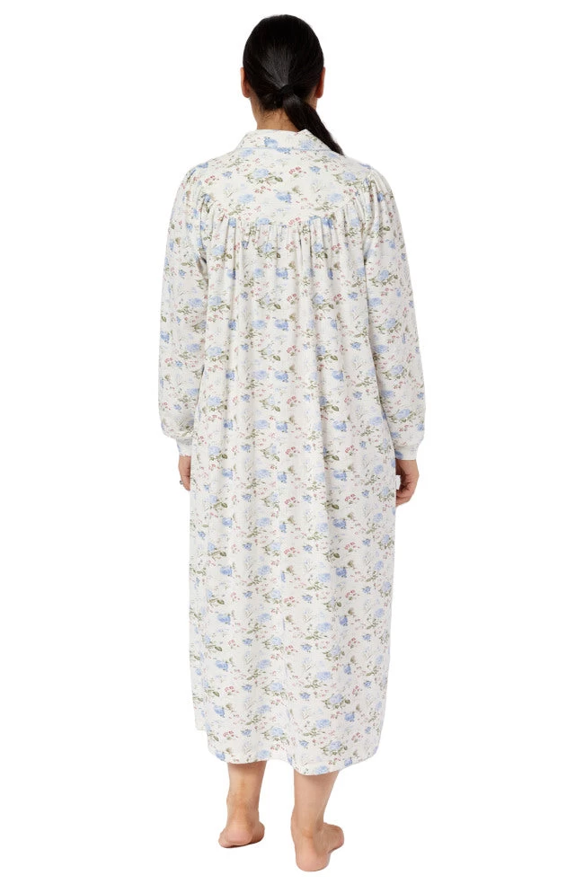 Frances Long Nightie in a lovely blue floral print is manufactured in a soft warm easy care polyester cotton fabric. Available in sizes 10-26.
