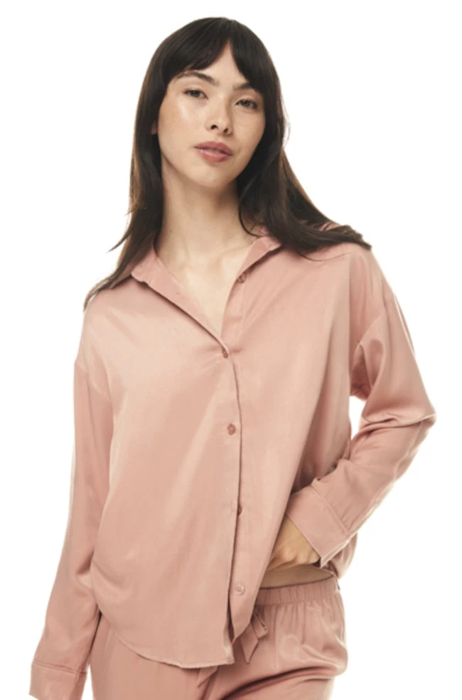 The Hilary sleepwear set features a sophisticated tan colour, which will complement any skin tone. The fabric is made from smooth and silky satin, ensuring maximum comfort and a touch of elegance.