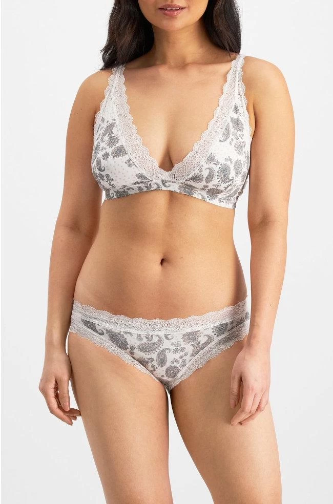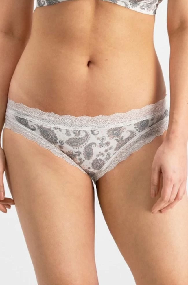 Parisienne Bikini Brief by Jockey in a lovely paisley print features delicate scalloped lace trim. Team with