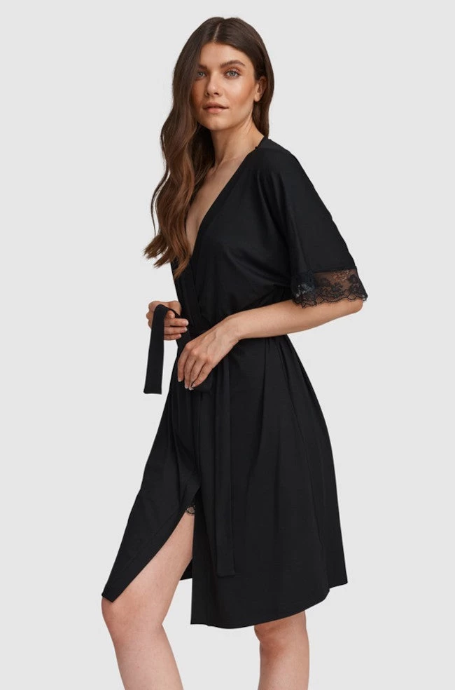 Lace Trim Robe (Black)