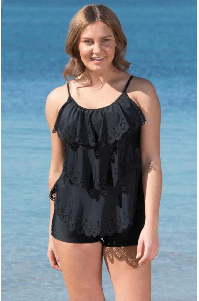 Be the first to review “Laser Cut Ruffle Tankini Top (Black)” Cancel reply