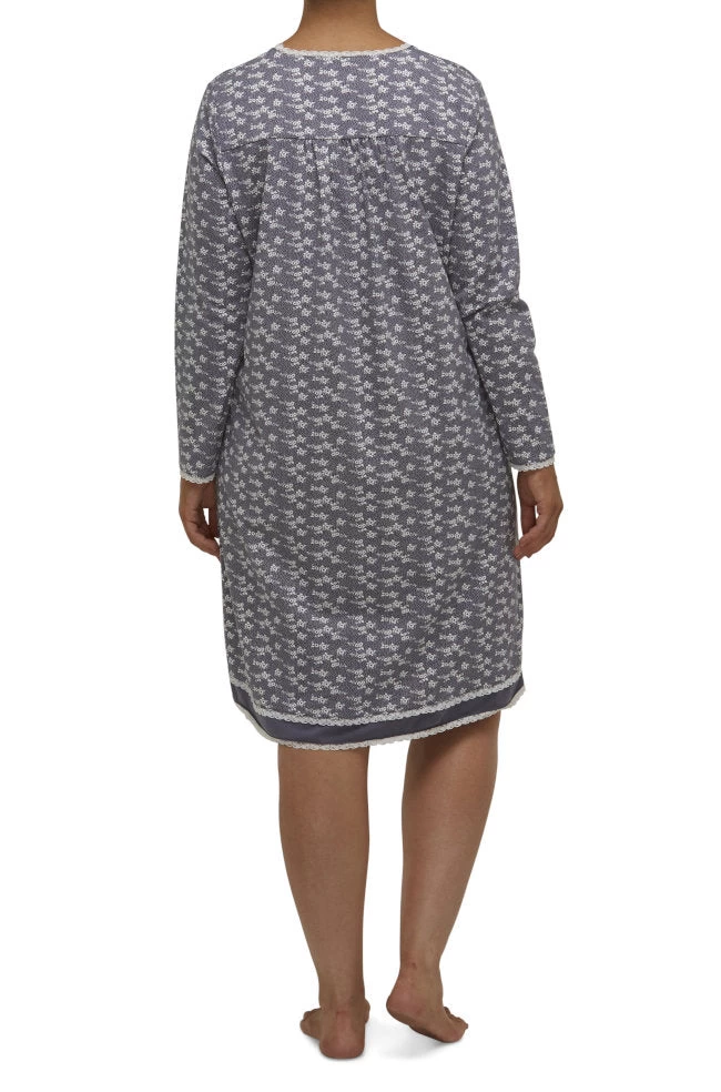 Lucy Long Sleeve Cotton Nightie (Gunmetal)