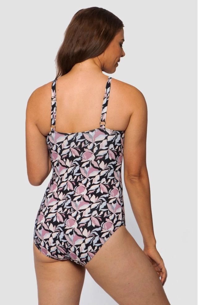 Night Flower One Piece Swimsuit by LaSculpte in a floral print is a twist front chlorine resistant one piece classic swimsuit with soft feminine lines. It is strategically designed to flatter most body shapes. The feminine soft gathered lines are designed to hide your tummy, combined with targeted power mesh lining through the front and back, this shapewear swimsuit is flattering with firm control to make you look the best in swim.