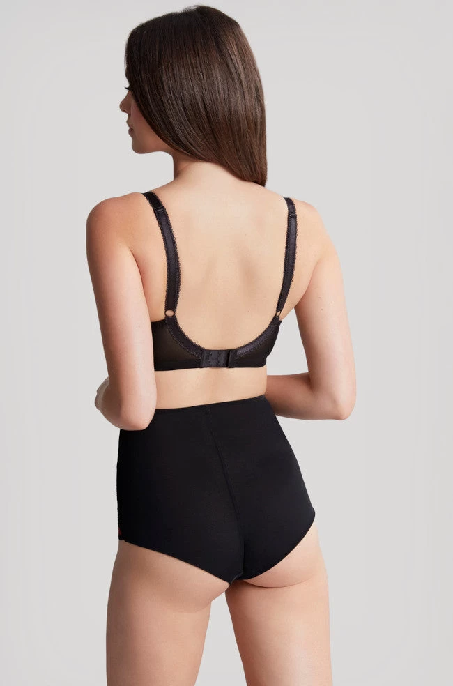 Clara High Waist Brief by Panache in a noir ruby colour are a great fitting high waist brief with lots of style, delicate lace detail and a sheer back. Team with the