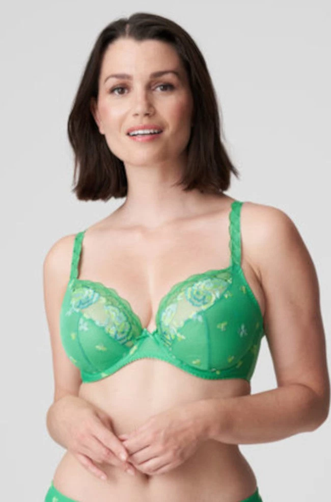 Palace Garden UW Plunge Bra by PrimaDonna in a lovely lush green colour features delicate lace detail and petite piping with very comfortable ornate fully adjustable straps. Team with the