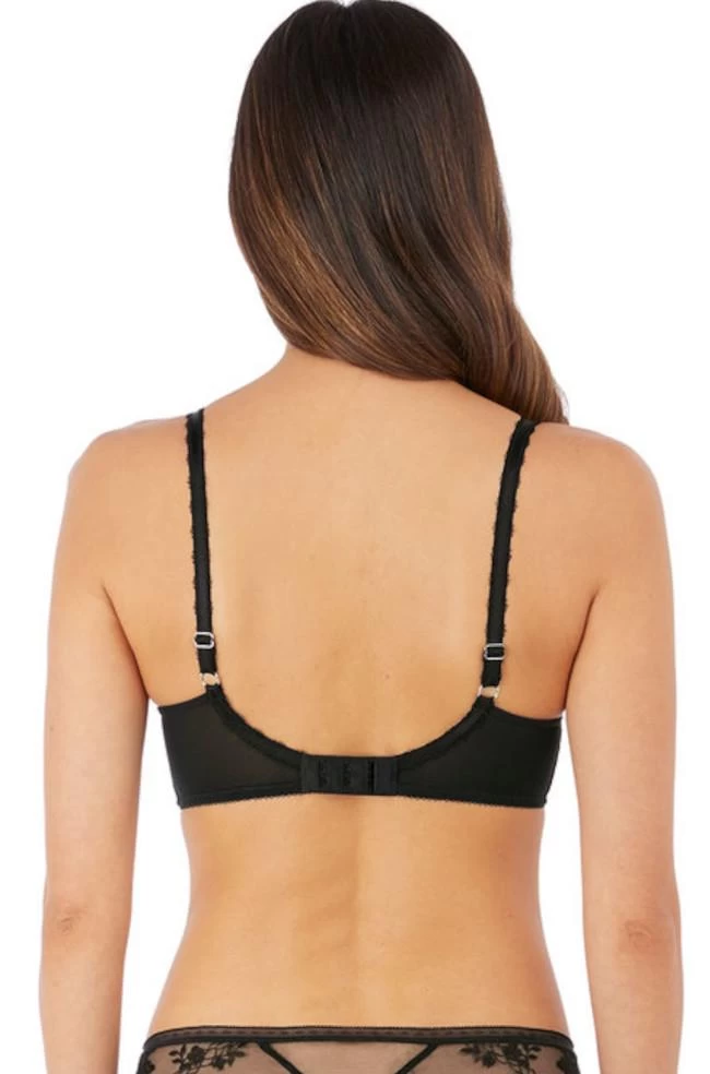 Lumiere Douce Balcony UW Bra by Wacoal in a stunning black floral colour and featuring delicate lace and a Swarovski crystal. Team with the