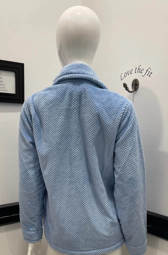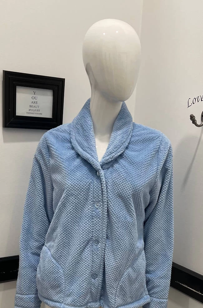 Zara Bed Jacket by Givoni in a willow colour features long sleeves and a full front five button opening and external side pockets. Available in sizes XS-2XL.